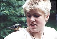 Am Sonntag, den 04.07.2004, 9 Wochen nach Kathrins Tod, stellte uns unsere Freundin Haide morgens einen Buddleia (Schmetterlings-Strauch) mit einem Holz-Dekor-Vogel vor die Tür. Am späten Morgen flog Angela in unserem Garten eine Meise zu. Sie rief uns zu sich und die Meise flog von einem zum anderen und blieb ca. eine Stunde bei uns.