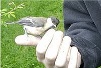 Am Sonntag, den 04.07.2004, 9 Wochen nach Kathrins Tod, stellte uns unsere Freundin Haide morgens einen Buddleia (Schmetterlings-Strauch) mit einem Holz-Dekor-Vogel vor die Tür. Am späten Morgen flog Angela in unserem Garten eine Meise zu. Sie rief uns zu sich und die Meise flog von einem zum anderen und blieb ca. eine Stunde bei uns.